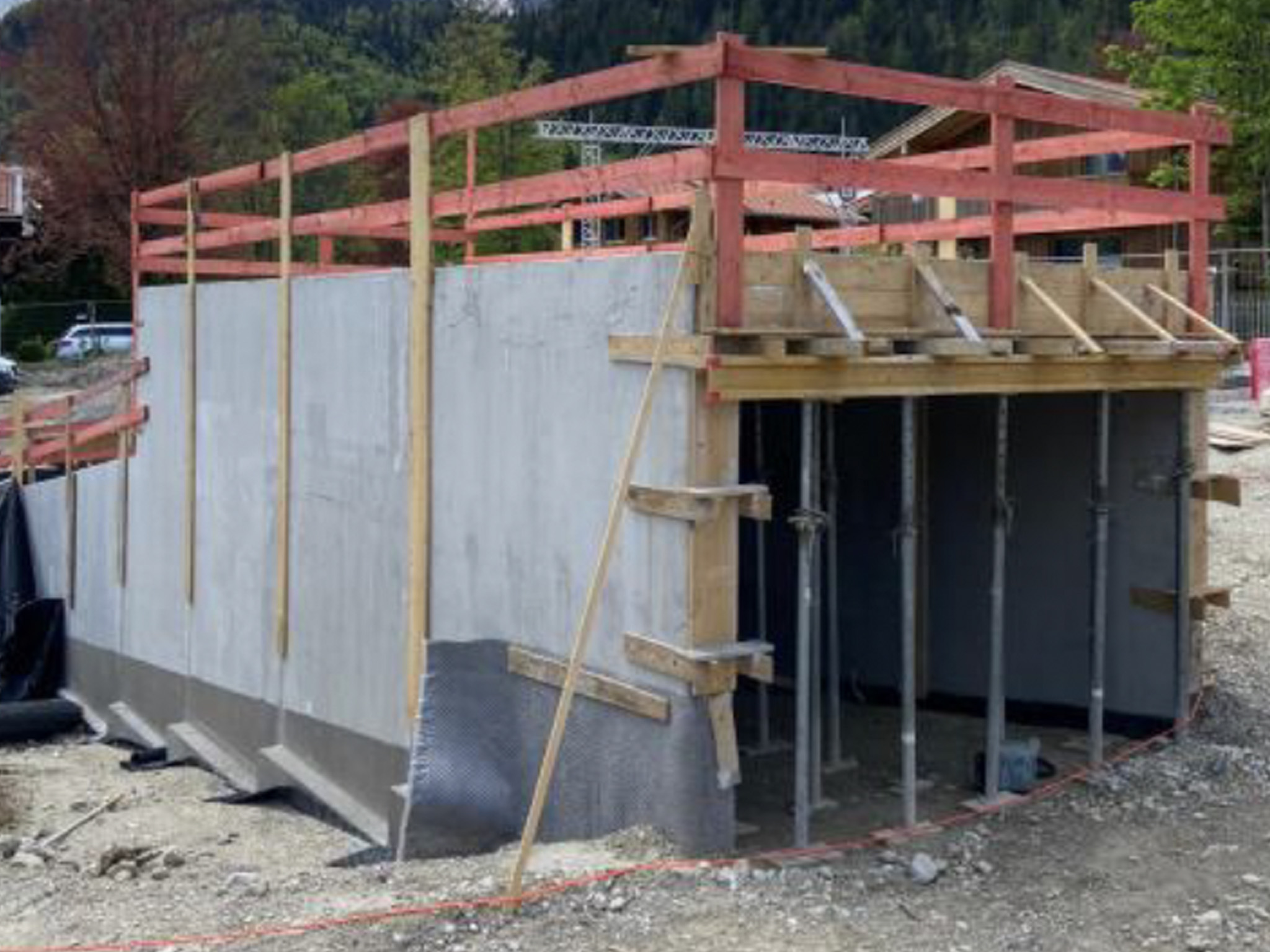Außerdem wurde die Einschalung der Tiefgarageneinfahrt fertiggestellt.