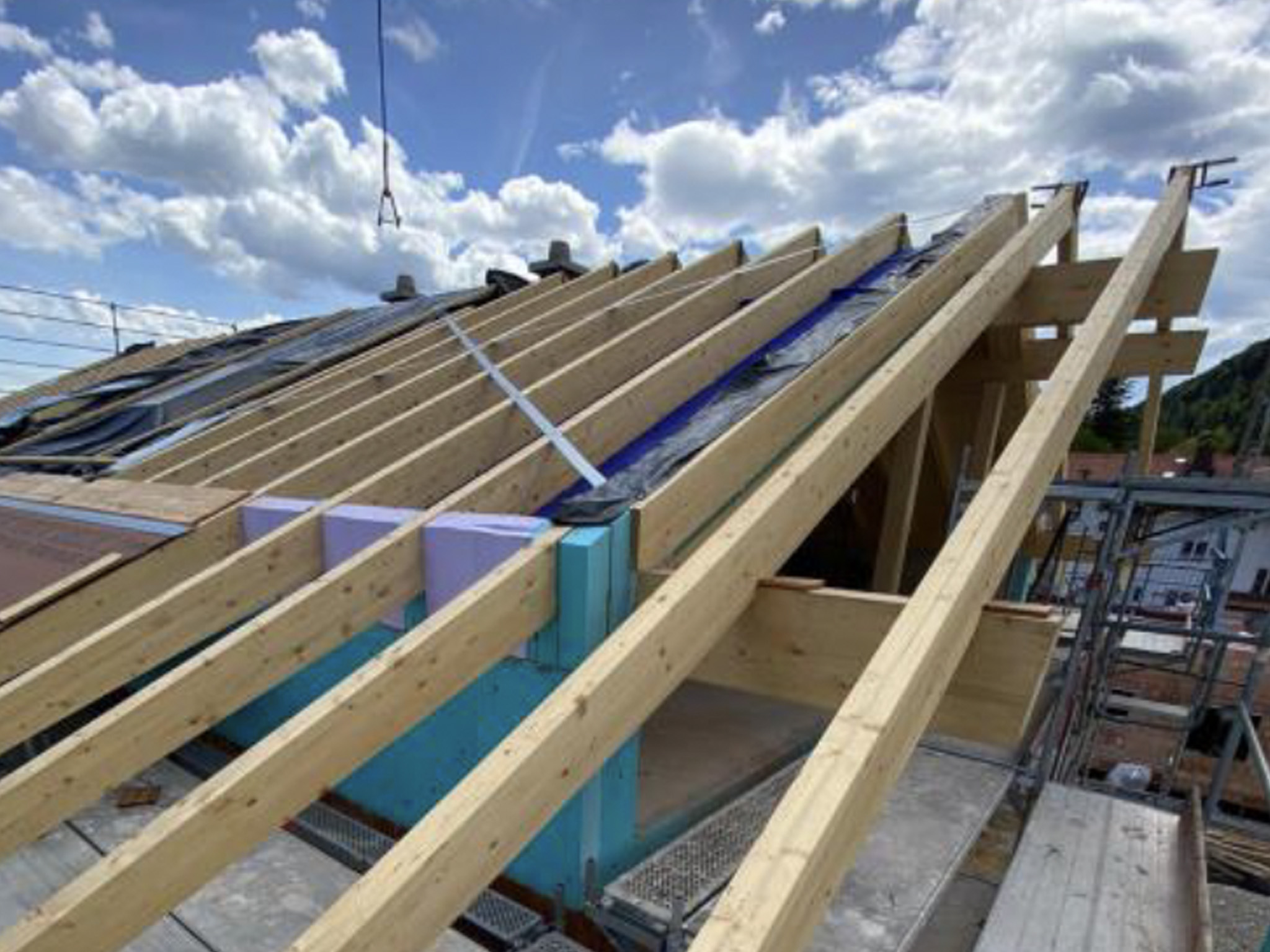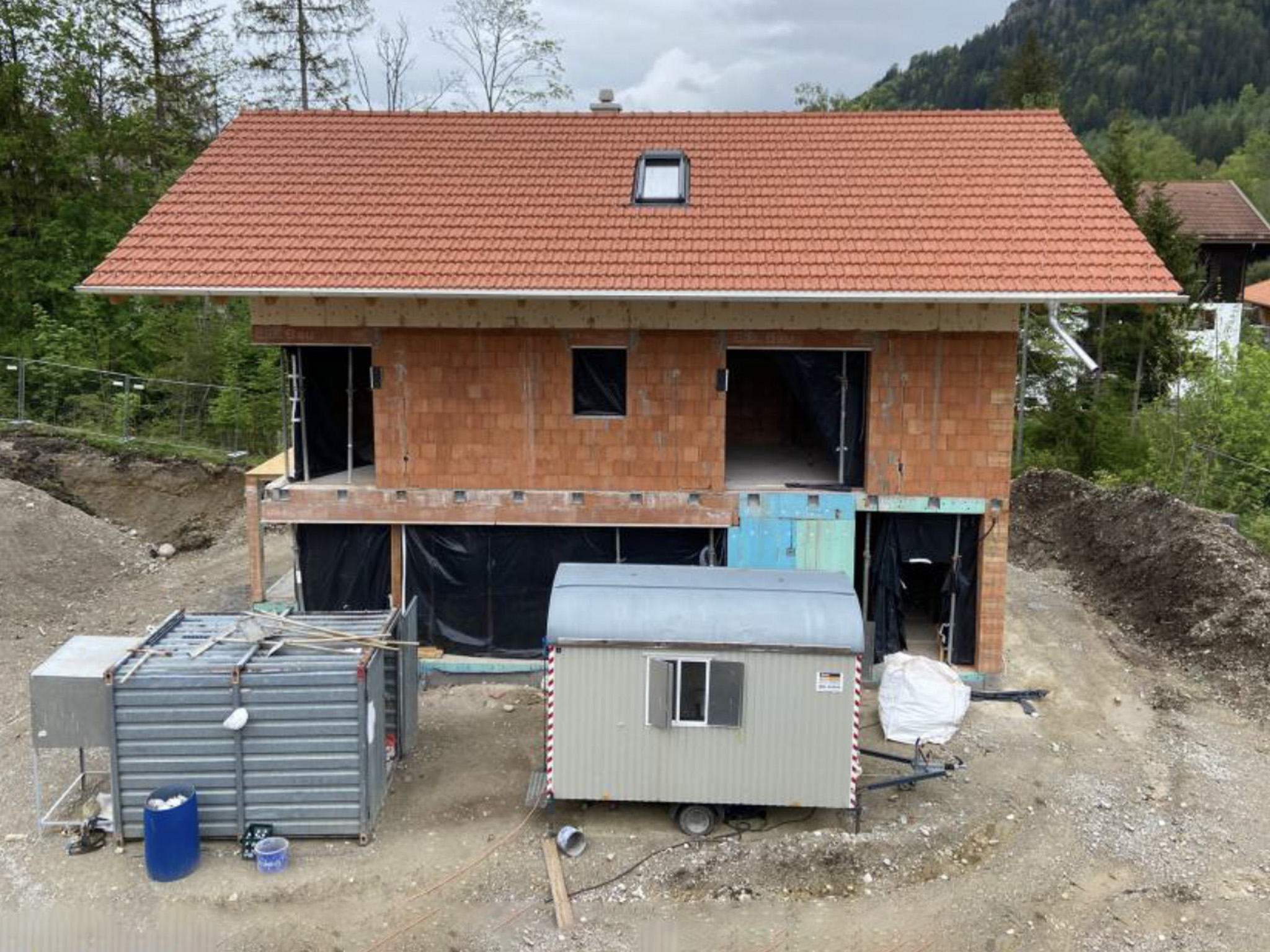 Bei beiden Mehrfamilienhäusern sind die Mauerarbeiten bereits bis zum Obergeschoss erfolgt, Innenwände wurden gestellt.