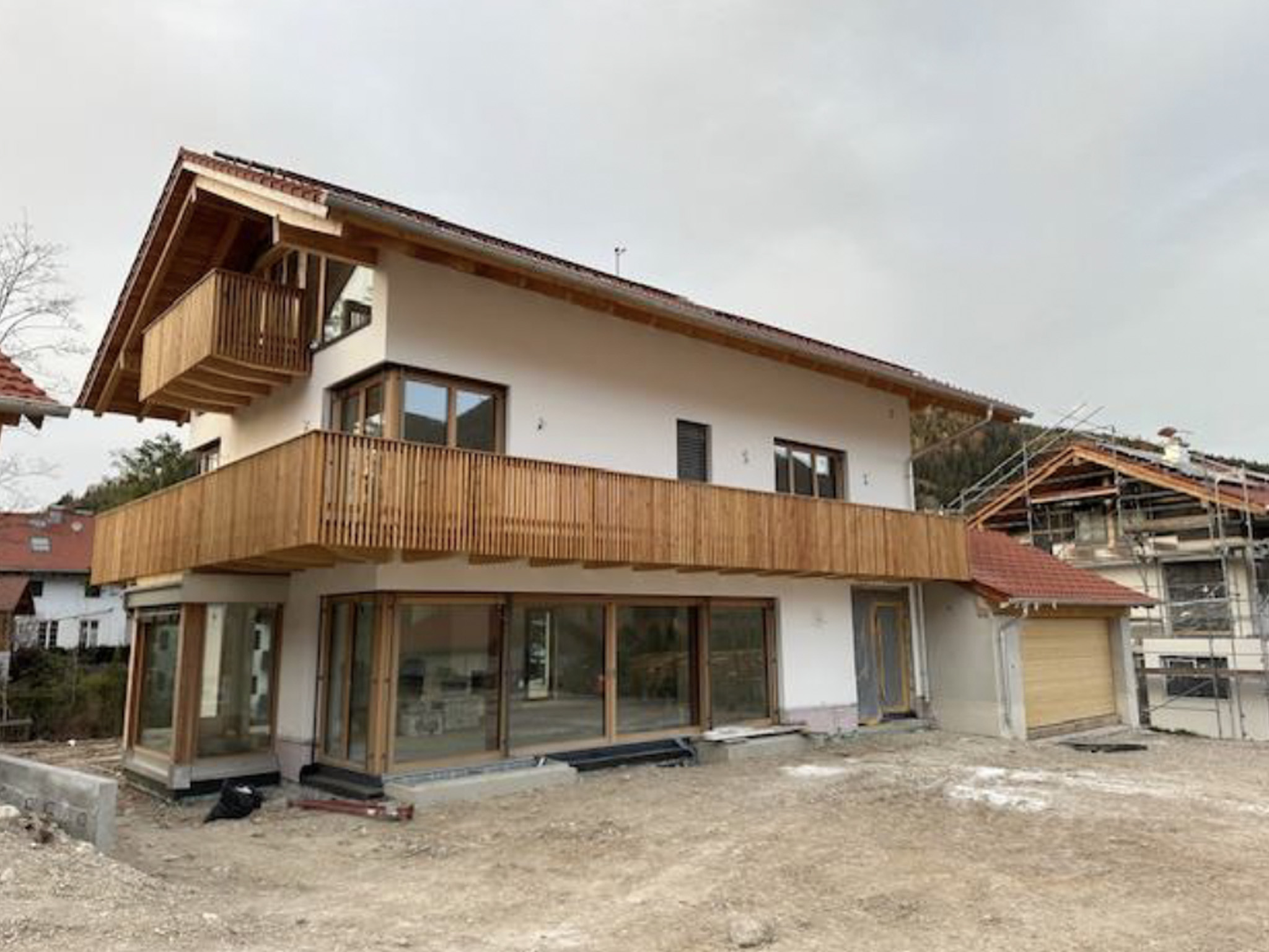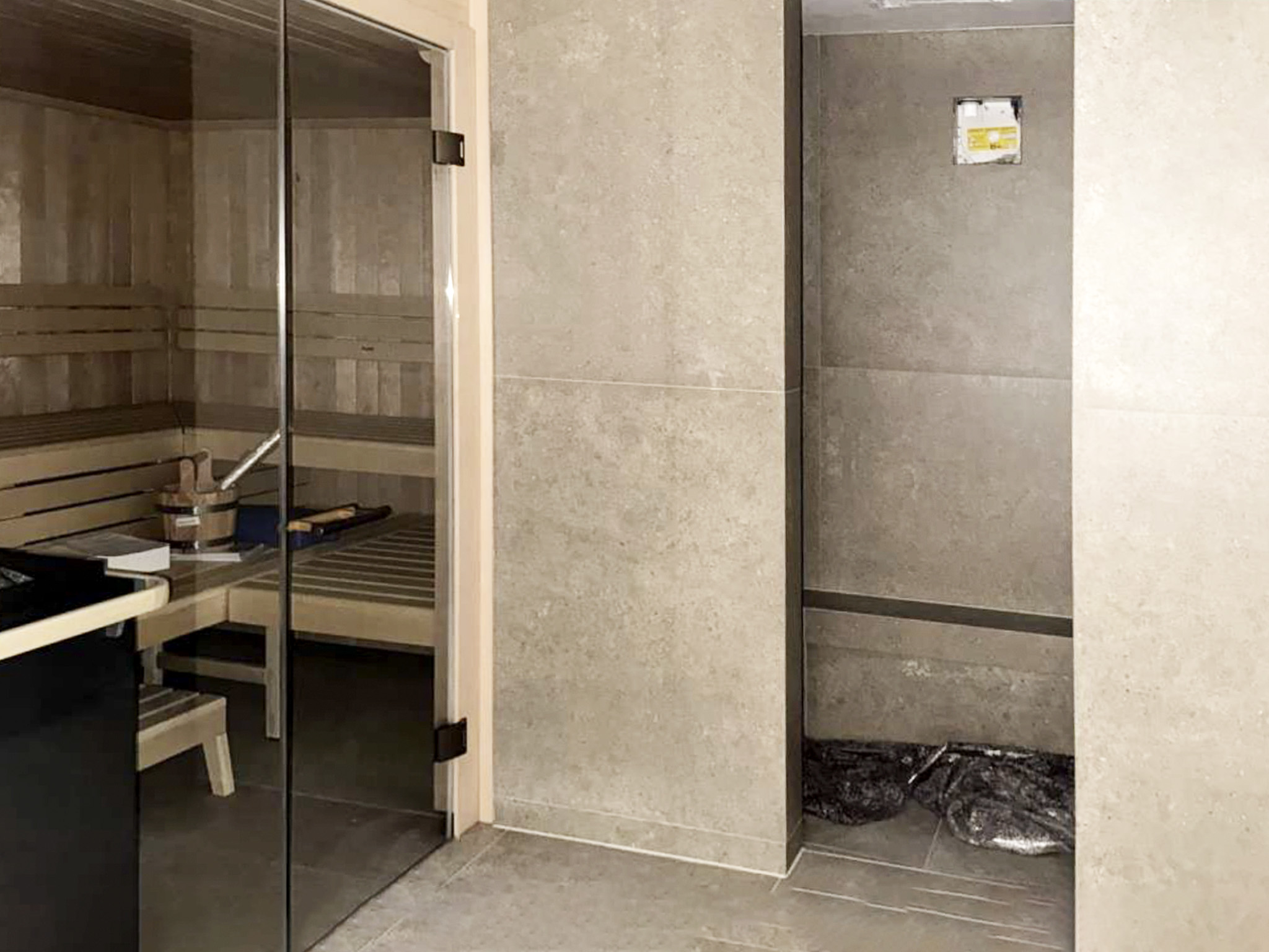 Heizung-, Lüftung- und Sanitärmontage ist in allen Landhausvillen abgeschlossen. Die Bäder sind fertiggestellt und die Parkettarbeiten überwiegend abgeschlossen. Saunen wurden integriert.