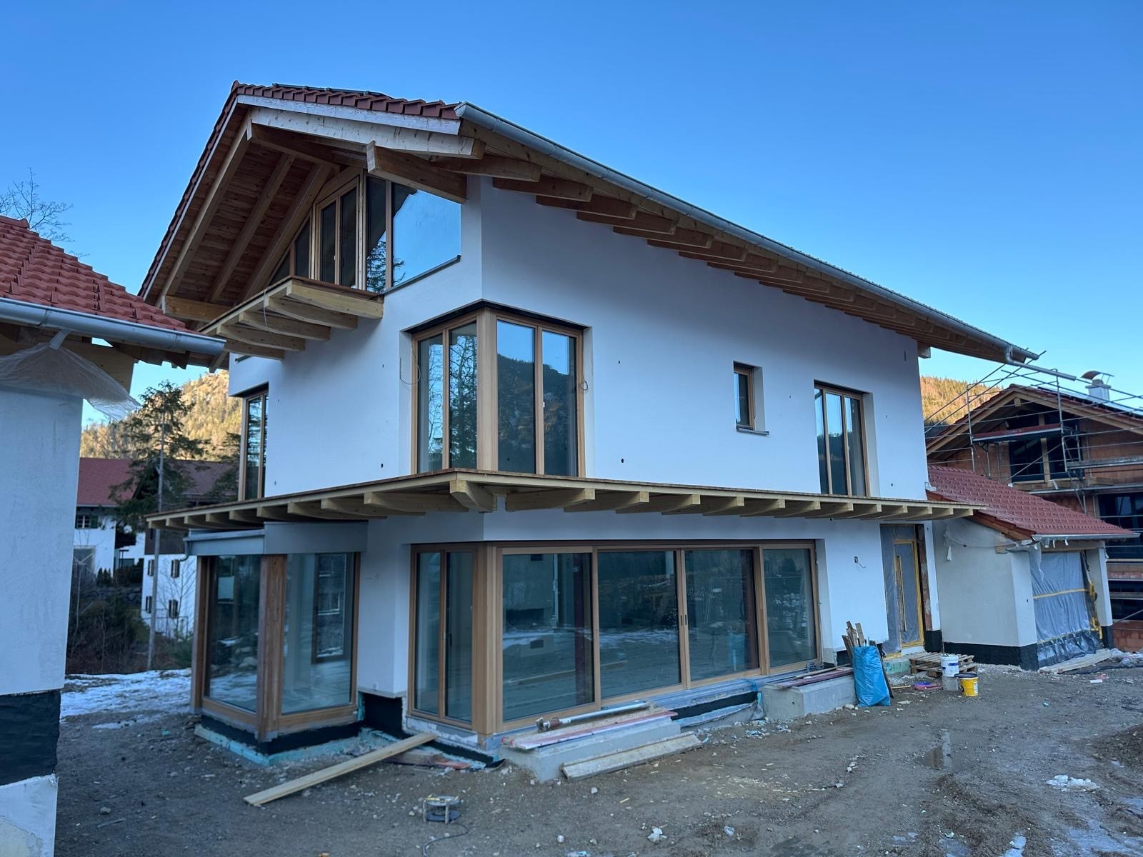 Die Landhausvillen haben einen großen Schritt in Richtung Fertigstellung gemacht. Garagentore und Balkone sind eingebaut. Fußbodenheizung und Estrich sind fertiggestellt, so dass die Aufheizung abgeschlossen und das Bauwerk getrocknet werden konnte. Maler- und Fliesenarbeiten sowie Feininstallationen sind zu 90% abgeschlossen und die Elektroanlage konnte bereits in Betrieb genommen werden.